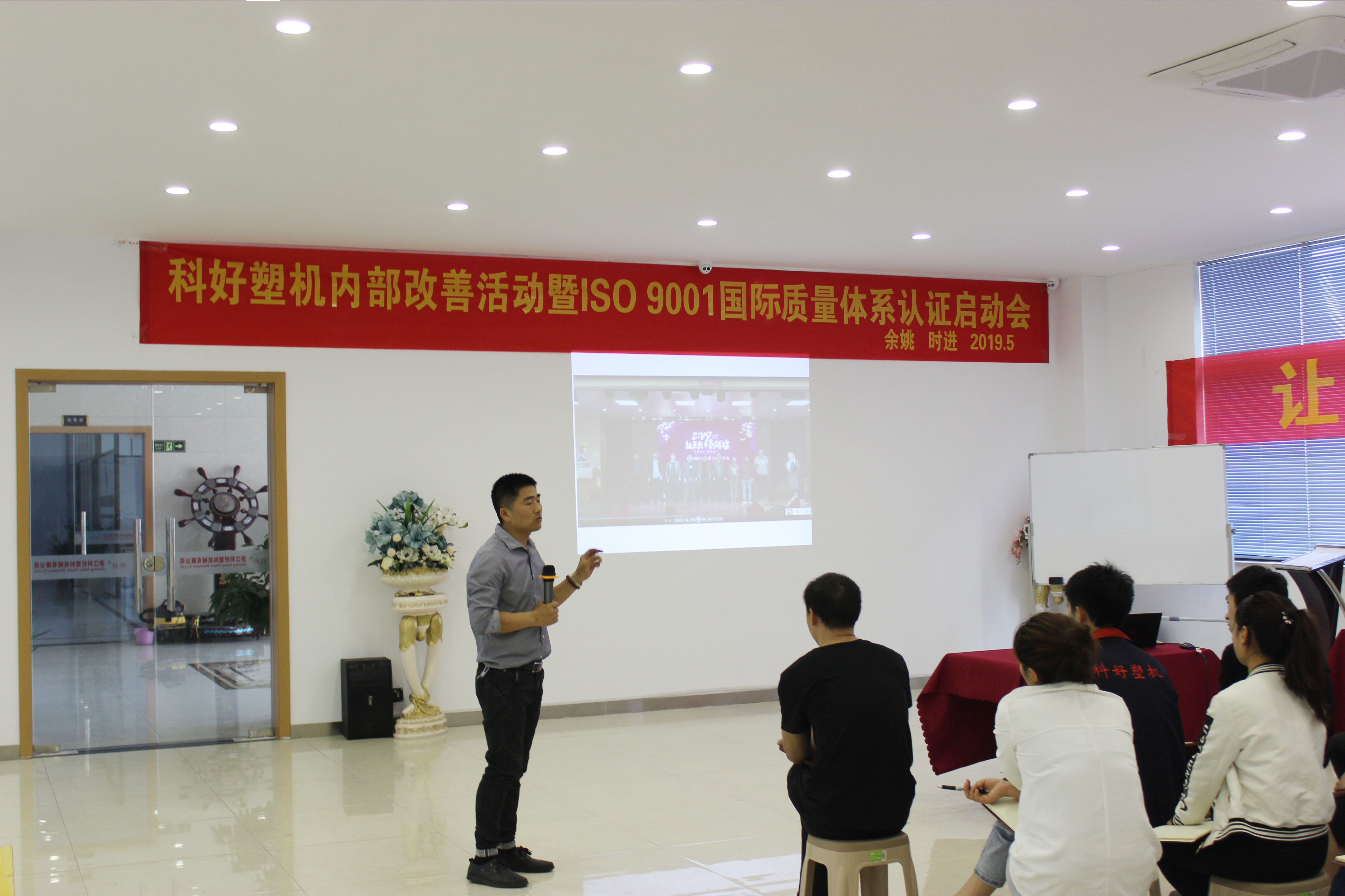 2019年的5月,由侯總宣布iso9001國際質(zhì)量體系認(rèn)證會正式啟動,由負(fù)責(zé)人老師為我們講述認(rèn)證的具體的流程的和認(rèn)證時間。由此科好公司將來要走國際質(zhì)量管理的層面上來。