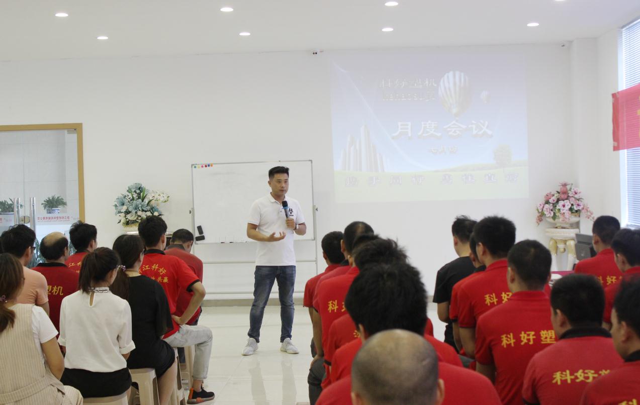 201981日下午4點。今天是個特殊的日子,浙江科好塑料機械有限公司月度會議于下午正式拉開帷幕。首先侯總在會上說:塑料造粒機市場是大有人在的,為什么客戶沒有選擇我們?要從我們自身找原因,我們自己的負責人員要專業性強。服務做到爭取做到110分。可能本不屬于你的客戶,到最后選擇你。未來的的市場將規劃幾款新的產品系列, 讓客戶真正的實現從廢舊塑料回收到選材、粉碎清洗、造粒、切粒等一站式服務。讓客戶從我們這里從塑料回收再到塑料造粒整套設備,安全更高效,省錢更放心!